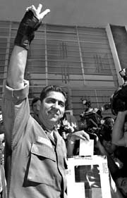 En el orden acostumbrado: José María Aznar, el juez Baltasar Garzón, Felipe González y el subcomandante Marcos. El dirigente zapatista, en su mensaje por la inauguración del Aguascalientes en Madrid, escribió duros calificativos contra los tres personajes FOTOS ARCHIVO DE LA JORNADA