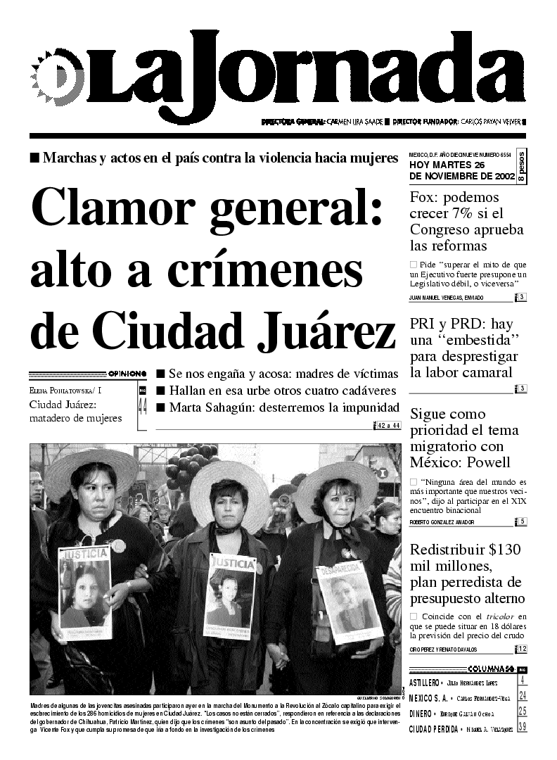 286 homicidios de mujeres en Ciudad Juárez. ``Los casos no están