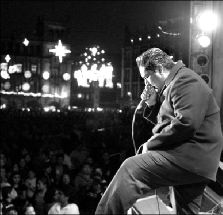 Como parte del programa Sábado Distrito Federal, de la Secretaría de Cultura, se realizó ayer un concierto en el Zócalo que reunió a aproximadamente 20 mil personas. Actuaron Los Infames, Zoe, Inspector (en la gráfica) y Juanes. Estos dos últimos tuvieron gran respuesta del público FOTO ALFREDO DOMINGUEZ