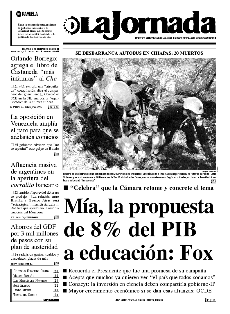 SE DESBARRANCA AUTOBUS EN CHIAPAS; 20 MUERTOS