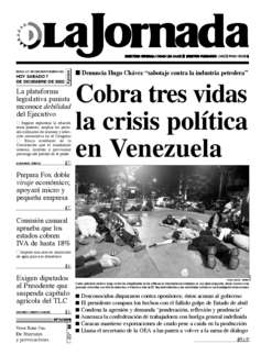 Desconocidos dispararon contra opositores; éstos acusan al gobierno El presidente compara los hechos con el fallido golpe de Estado de abril Condena la agresión y demanda ``ponderación, reflexión y prudencia'' Amenaza la confederación de trabajadores con huelga general indefinida Caracas mantiene exportaciones de crudo pese a caída en la producción Llama el secretario de la OEA a las partes a volver a la mesa de diálogo