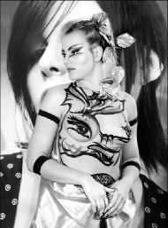 Una modelo muestra un body painting, creación del diseñador Vladimir Kapochenia, que compitió en la categoría Cosméticos decorativos en el campeonato de estilistas que se realiza en Minsk, Bielorrusia FOTO AFP