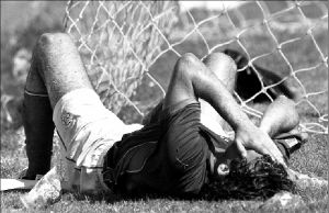 Galdámez, cuando agonizaba el primer tiempo.