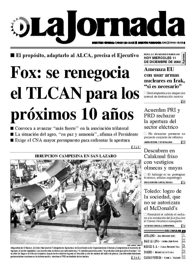 Carta a Fox ``Cuando se obliga a revelar fuentes ya nadie da informaciones'', advierte