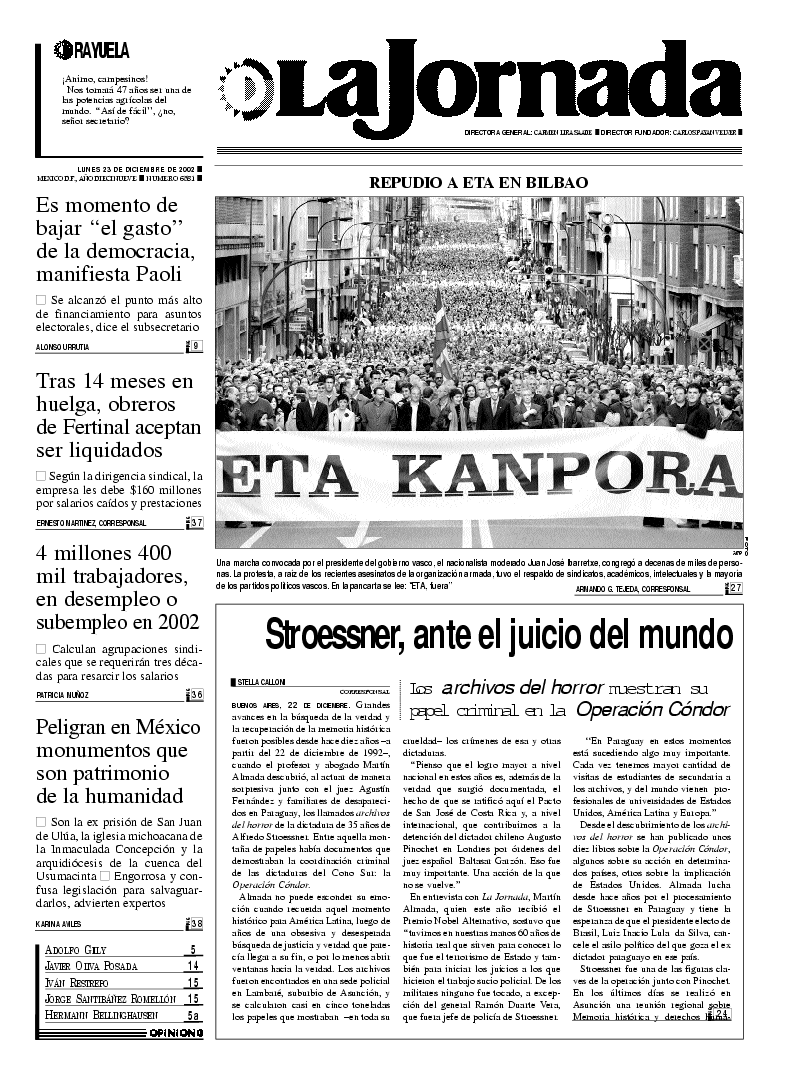 4 millones 400 mil trabajadores, en desempleo o subempleo en 2002