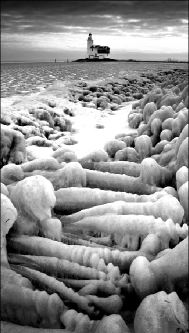 El Faro Marken en Holanda, rodeado por enormes pilares de hielo durante diciembre. El departamento de diques, caminos y navegación renta este faro. El único problema es que la casa no tiene ninguno de los servicios básicos FOTO AFP