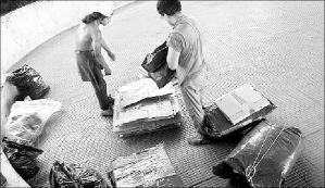Integrantes de la cooperativa de cartoneros Los Ceibos ordenan su material en la ciudad de Buenos Aires. Muchos de los más de 25 mil cartoneros que diariamente hurgan en los sacos de basura de Buenos Aires han convertido la angustia por una labor considerada indigna en una oportunidad en medio de la crisis, integrándose en entidades que son activas promotoras de la preservación del ambiente FOTO AFP