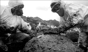 El submarino ha logrado tapar cinco de las 20 grietas que presenta el buque petrolero, que aún alberga en los tanques unas 50 mil toneladas de fuel-oil, por las que continúa saliendo combustible.