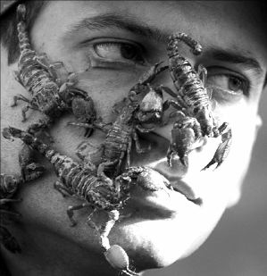 Un pakistaní coloca escorpiones en su rostro para promocionar la Casa de las Serpientes, en Rawalpindi, cerca de Islamabad. El recién inaugurado recinto alberga a cientos de especies de reptiles y la entrada a él es completamente gratuita FOTO REUTERS
