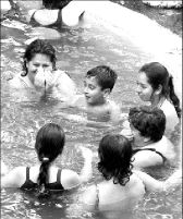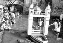 Paseantes en las aguas termales de