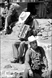 Músico y fotógrafo esperan a su clientela en un pueblo del