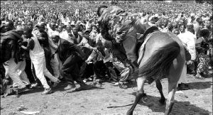 Un soldado cae de su caballo frente a los cientos de miles