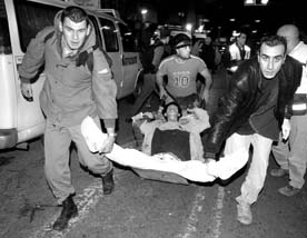 Al menos 25 muertos y cien heridos fue el saldo de los ataques palestinos perpetrados en un barrio de Tel Aviv. Israel respondió con un asalto a Gaza, donde helicópteros lanzaron misiles contra varios edificios provocando cortes en la energía eléctrica FOTO REUTERS