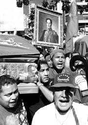 Féretros con los restos de Oscar Gómez y Jairo Morán fueron llevados a la sede de la mesa de diálogo que encabeza el secretario general de la OEA, César Gaviria FOTO JOSE ANTONIO LOPEZ