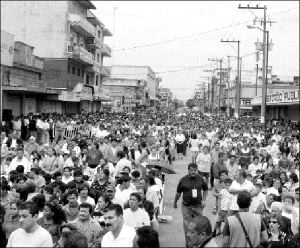 Concentrados en el cruce de las calles Juan Soto y Miguel Hidalgo, miles de porteños, entre deudos, locatarios, vendedores ambulantes, efectivos de Bomberos y de Protección Civil, funcionarios de distintos niveles, así como ciudadanos en general, participaron en la ceremonia religiosa con la cual se recordó a las personas fallecidas en el mismo sitio, donde el último día de 2002 explotaron puestos ambulantes que expendían juegos pirotécnicos.
