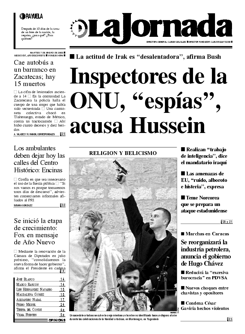 Inspectores de la ONU, ``espías'', acusa Hussein