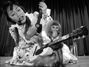 Conan toca la guitarra acompañado de su instructora