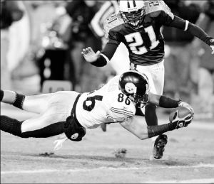 de los Acereros, luego de que el quarterback Steve McNair conectó