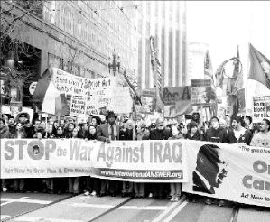 Veteranos de guerra, madres con sus hijos, un grupo que se identificó como "las abuelitas furiosas", creyentes musulmanes y judíos, integrantes de varias iglesias protestantes y miles de jóvenes se congregaron frente al Capitolio para expresar su repudio a la anunciada guerra contra Irak.