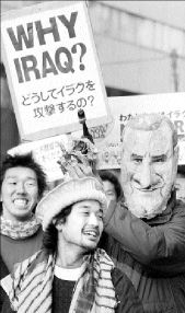 Objetando a Bush sus "palabras de engaño masivo", las pancartas de los manifestantes ofrecieron un mapa de la diversidad de este movimiento, caracterizado por un participante como "de paz preventiva", donde sindicalistas, am-bientalistas, organizaciones de derechos humanos, grupos comunitarios, de solidaridad, de universidades y tantos más se unieron