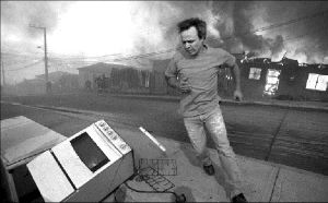 Un poblador de Valparaíso al huir ayer de uno de los incendios que destruyeron 57 casas en esa localidad y Viña del Mar. Los siniestros pudieron ser causados intencionalmente. En cierto momento hubo 15 focos simultáneos en ambas localidades, de acuerdo con informes gubernamentales FOTO AFP