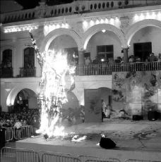 cohetes y fuegos artificiales para incinerarlos en la plaza principal.
