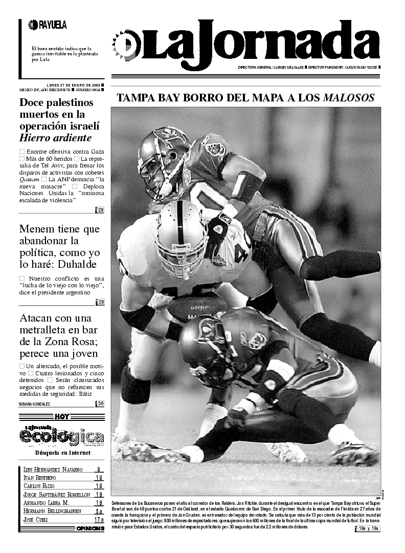 Enorme ofensiva contra Gaza Más de 60 heridos La represalia de Tel Aviv, para frenar los disparos de activistas con cohetes Qassam La ANP denuncia ``la nueva masacre'' Deplora Naciones Unidas la ``ominosa escalada de violencia''