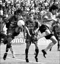 disputaron el balón por aire Juan Pablo García y Oscar Maturín,