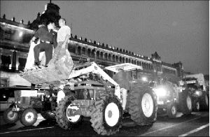 MARCHISTAS A BORDO  Algunos campesinos que participaron en la megamarcha arribaron al Zócalo capitalino en tractores, caballos y burros FOTO FRANCISCO OLVERA