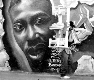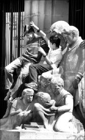 RECREACION  Dos niños juegan arriba de una estatua afuera del Metro Balderas FOTO ALFREDO DOMINGUEZ