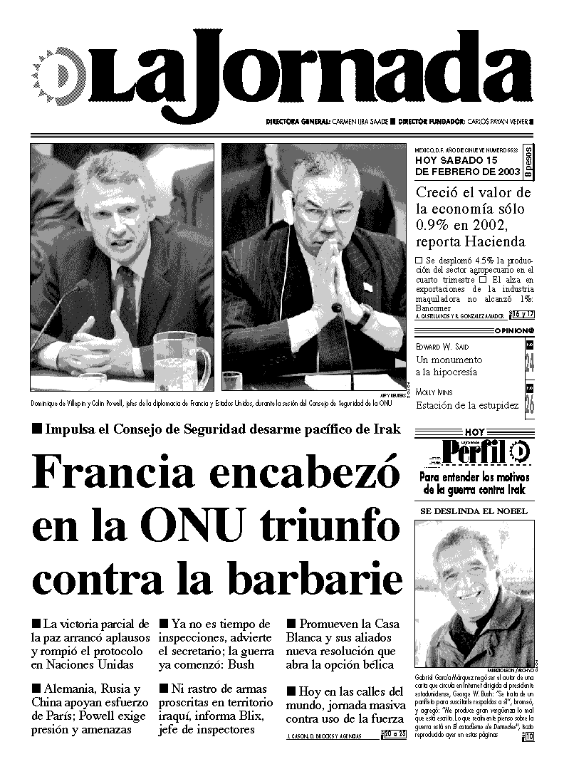 Ya no es tiempo de inspecciones, advierte el secretario; la guerra ya comenzó: Bush