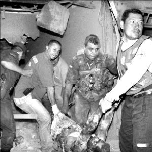 Pero el peor ataque fue lo que se denominó como una ''casa-bomba'', con tal magnitud que unas 70 viviendas resultaron destruidas, y otras casas y predios fueron también afectados. Entre los muertos están al menos nueve policías, un fiscal y dos menores de edad, así como más de una treintena de civiles heridos.