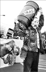 EN 1991 SE expulsa a Irak de Kuwait, pero en 2003, sin razón persuasiva, la dupla EU/GB piensa invadir, ocupar, derrocar al partido proto-laico Baas, gobernar militarmente, instalar un régimen títere, y administrar los yacimientos petroleros. El primer objetivo en esta ocasión, como lo ha difundido sin tapujos el Departamento de Estado, será la preservación de los pozos petroleros para "impedir que Saddam los incendie". Los miles de muertos civiles que se esperan y los más de 6 millones de refugiados que se pronostican no forman parte de los cuidados de la "guerra preventiva" como los pozos petroleros.