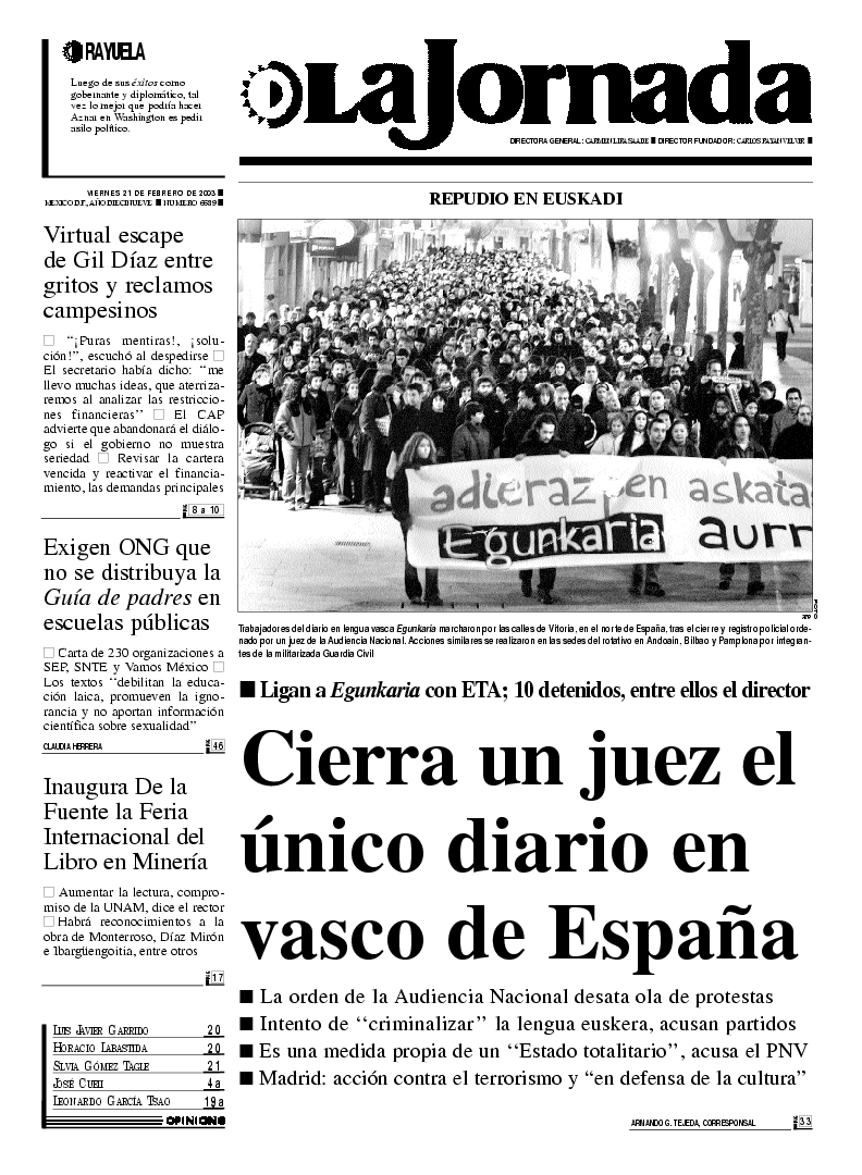 Cierra un juez el único diario en vasco de España