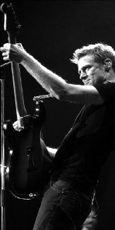 El cantante canadiense Bryan Adams actúa durante el concierto que ofreció para unos 13 mil fans en el Palau de Sant Jordi, en Barcelona. Adams presentó las canciones de su nuevo álbum, The best of me FOTO AFP