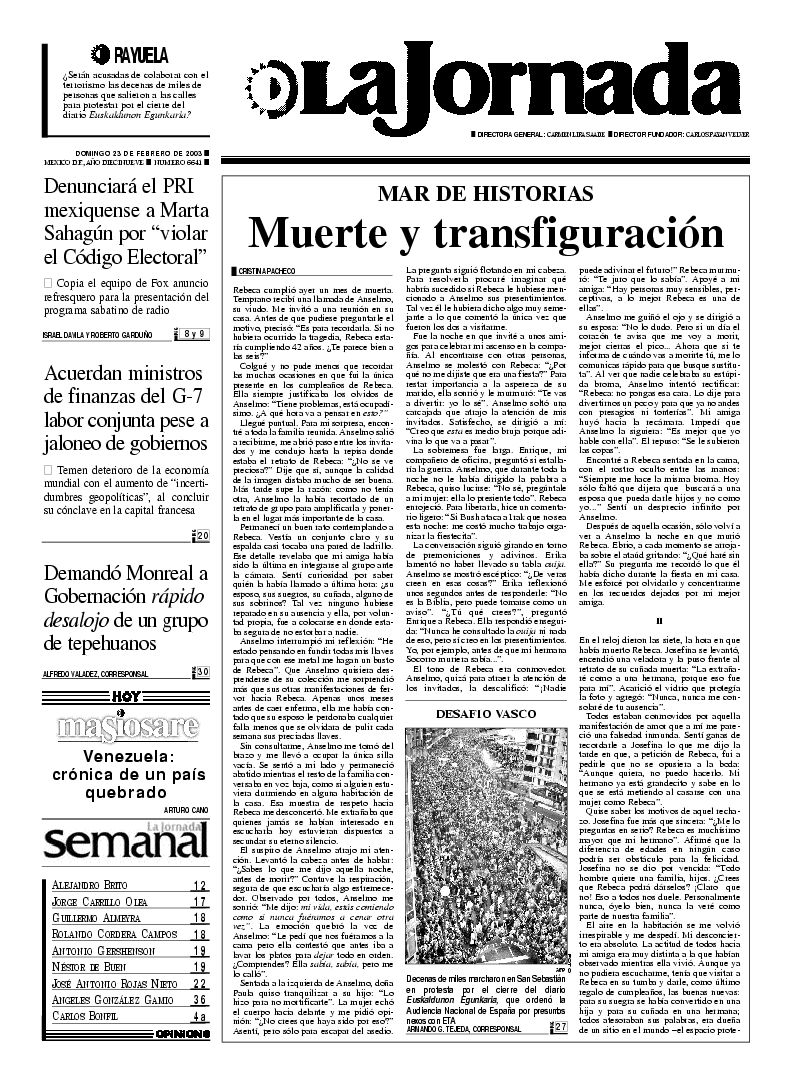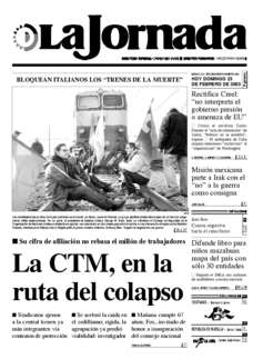 Las manifestaciones en favor de la paz continúan en el mundo: en Zocco, cerca de Vicenza, un grupo pacifista obstaculiza el paso de un tren con cargamento militar estadunidense. Por su parte, el presidente de Estados Unidos, George W. Bush, lanzó un ultimátum al Consejo de Seguridad de la Organización de Naciones Unidas consistente en aprobar una resolución en dos meses para abrir el camino a una intervención armada contra Saddam Hussein, mientras en el Vaticano Karol Wojtyla pidió al primer ministro británico, Anthony Blair, ``impedir la tragedia de una guerra'' FOTO AFP