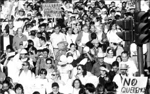 2. LA PROPAGANDA DE LA ANSIEDAD BELICISTA. Desde hace tres semanas, los medios masivos estadunidenses, en especial los que pertenecen al magnate australiano Robert Murdoch han acelerado la propaganda de la ansiedad belicista. La derecha, que impulsa el miedo y la sicosis, la docilidad frente al mensaje y el rating como único valor de la masa ignorante y desinformada, se enfrenta a desafíos simbólicos a los que no estaba acostumbrada: el star system de Hollywood (creado para "entretener", no para "debatir") le ha dicho no a la guerra y ha concentrado la atención de la opinión pública. En días pasados, el actor George Clooney acusó a la industria de reditar las "listas negras" contra los actores que se han atrevido a manifestar su oposición a Bush. La enorme "coalición arcoiris" que acompañó a Bill Clinton en el poder (ecologistas, feministas, grupos gays y lésbicos, creadores alternativos, estudiantes universitarios, científicos y economistas posneoliberales) se han vuelto a aglutinar en un solo frente: el pacifismo activo.