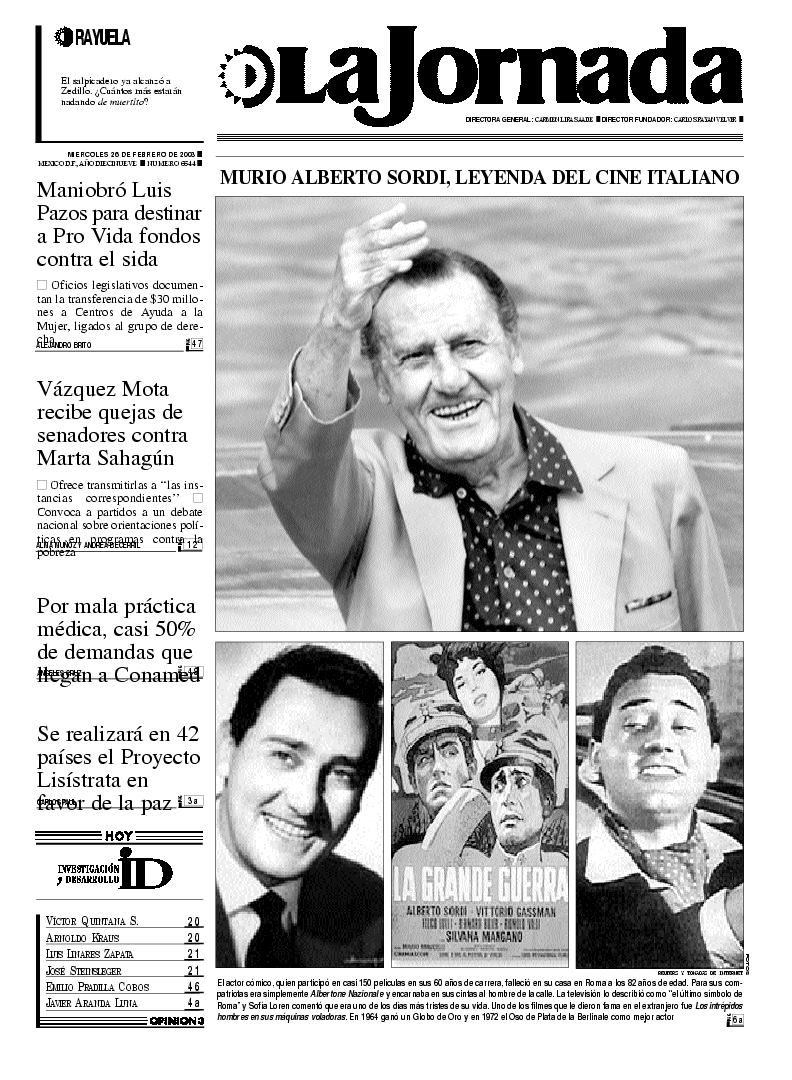 MURIO ALBERTO SORDI, LEYENDA DEL CINE ITALIANO