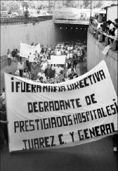 En el mitin que realizaron en la entrada principal de la Ssa quemaron dos muñecos que representaban al secretario Frenk Mora y al director del Hospital General de México, Francisco Higuera. Empleados del Hospital Juárez denunciaron hostigamientos laborales por parte del director del nosocomio, Elías Rescala Baca. Comentaron que a partir de que La Jornada publicó un reportaje sobre la situación económica y administrativa de esa unidad médica, el funcionario ordenó extremar medidas de vigilancia para evitar la entrada de personas ajenas al nosocomio.