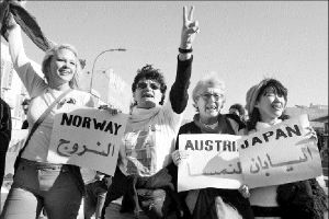 pacifistas de todo el mundo que en grupos de 15 y hasta 20 personas siguen