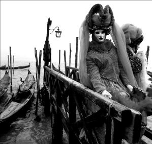 Dos hombres enmascarados posan en un puente durante las festividades de carnaval en Venecia, las cuales son las más antiguas en Italia, y las que más turistas atraen cada año FOTO AFP