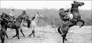 Ligeros problemas para uno de los jinetes de la cabalgata Unidos por las tradiciones, a su paso por Nuevo Laredo FOTO ROBERTO AGUILAR GRIMALDO