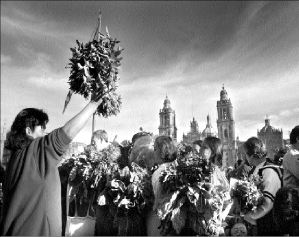 Regalo de productos hortícolas ayer en el Zócalo, por parte de campesinos del DF y otras entidades FOTO MARIA LUISA SEVERIANO