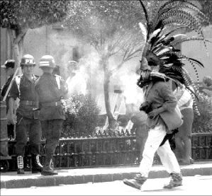 Un conchero pasa frente a Palacio Nacional rumbo al Templo Mayor FOTO CARLOS RAMOS MAMAHUA