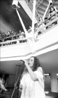 La cantante Nina Galindo presentó ayer su espectáculo Cantos de esperanza a la mujer en la estación San Lázaro del Metro, como parte de los festejos por el Día Internacional de la Mujer FOTO ROBERTO GARCIA RIVAS
