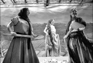 Jesusa añade: "Isela Vega representa a la tierra virgen, la que no se debe echar a perder, la tierra que no se ha privatizado, la escogimos a ella porque es la única carpera/cabaretera que he conocido en mi vida con inteligencia y valor. Después está este grupo de actrices extraordinarias que se hacen llamar Las Reinas Chiulazth: Ana Francis Moore, Cecilia Sotres, Nora Huerta y Marisol Gazé, un grupo de cabareteras extraordinarias. Quiero que ellas se apropien de este espacio porque es momento de que hagan su propio cabaret, y yo represento a la tierra privatizada, cercada con alambres de púas, que protege el ejército, a la que no se puede entrar".