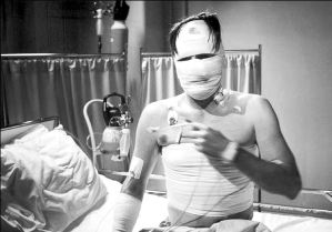 tras la salvaje golpiza que le propinan tres asaltantes. Sin posesiones