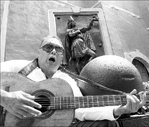 Al pie de la efigie del rey poeta, Nezahualcóyotl, un invidente llena la calle de Filomeno Mata con su canto con el que trata de ganarse la vida FOTO JOSE CARLO GONZALEZ