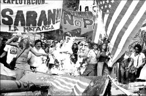 pancartas con frases como "Estadunidenses, vuelvan a casa" o "¡No