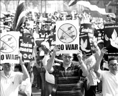 contra una posible guerra contra Irak, acompañados por una gigantesca